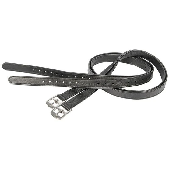 Lederbügelriemen mit silberfarbenen Schnallen. Die Bügelriemen sind an den Schnallen mit Nylon verstärkt.